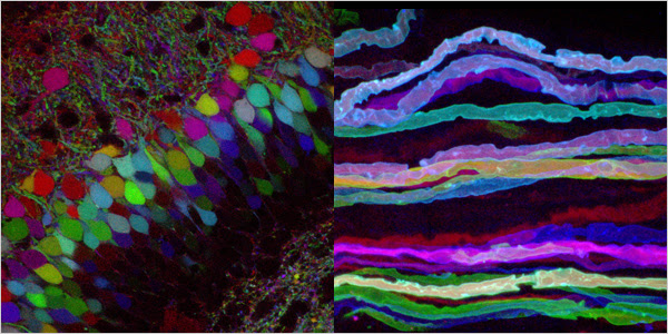 Scientists can use this technique in animals, whose brain systems work in ways similar to those of humans, to see exactly where each cell begins and ends, both within the brain and out through the spine and the limbs — and what happens in between.