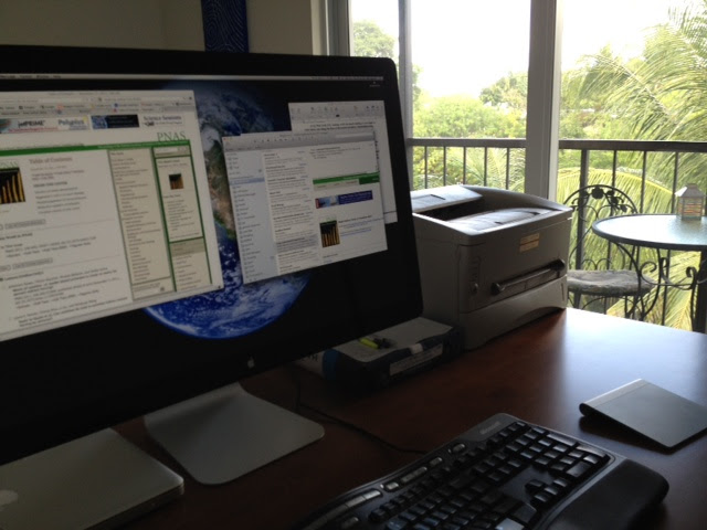 I'm tired from three days driving with my two Abyssinian cats from Madison WI to my condo in Fort Lauderdale, FL (posts have been coming out on autopilot)... The picture is my work pod, just set up in my office here.